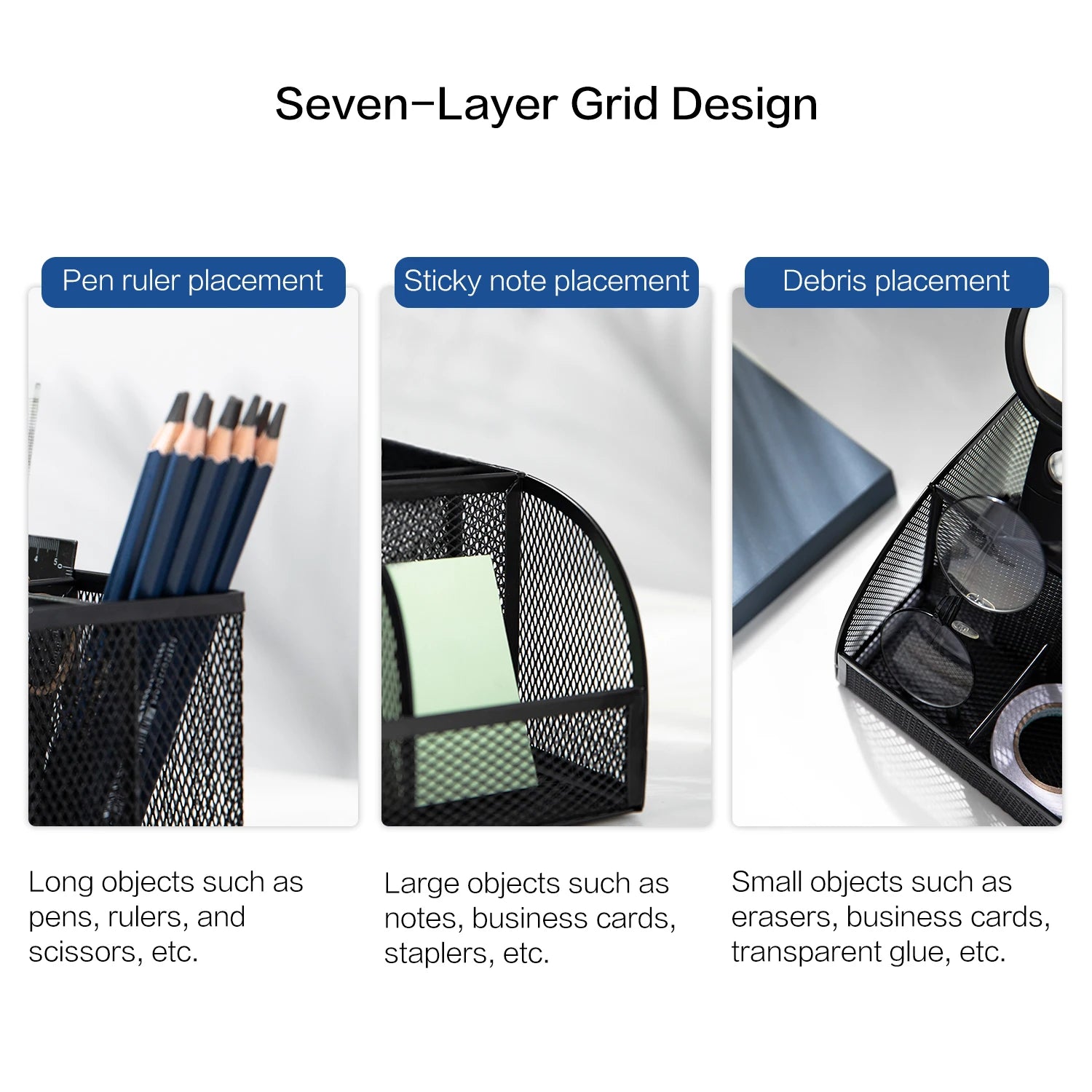 Deli Mesh Desktop Organizer Office Supplies, 7 Compartments, Black